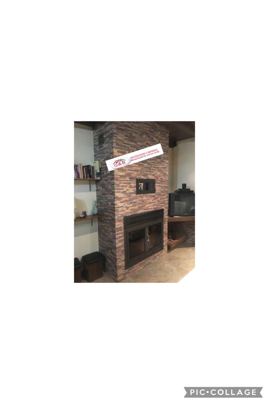 Revestimiento de chimenea de azulejos Imitacion a piedra con orno