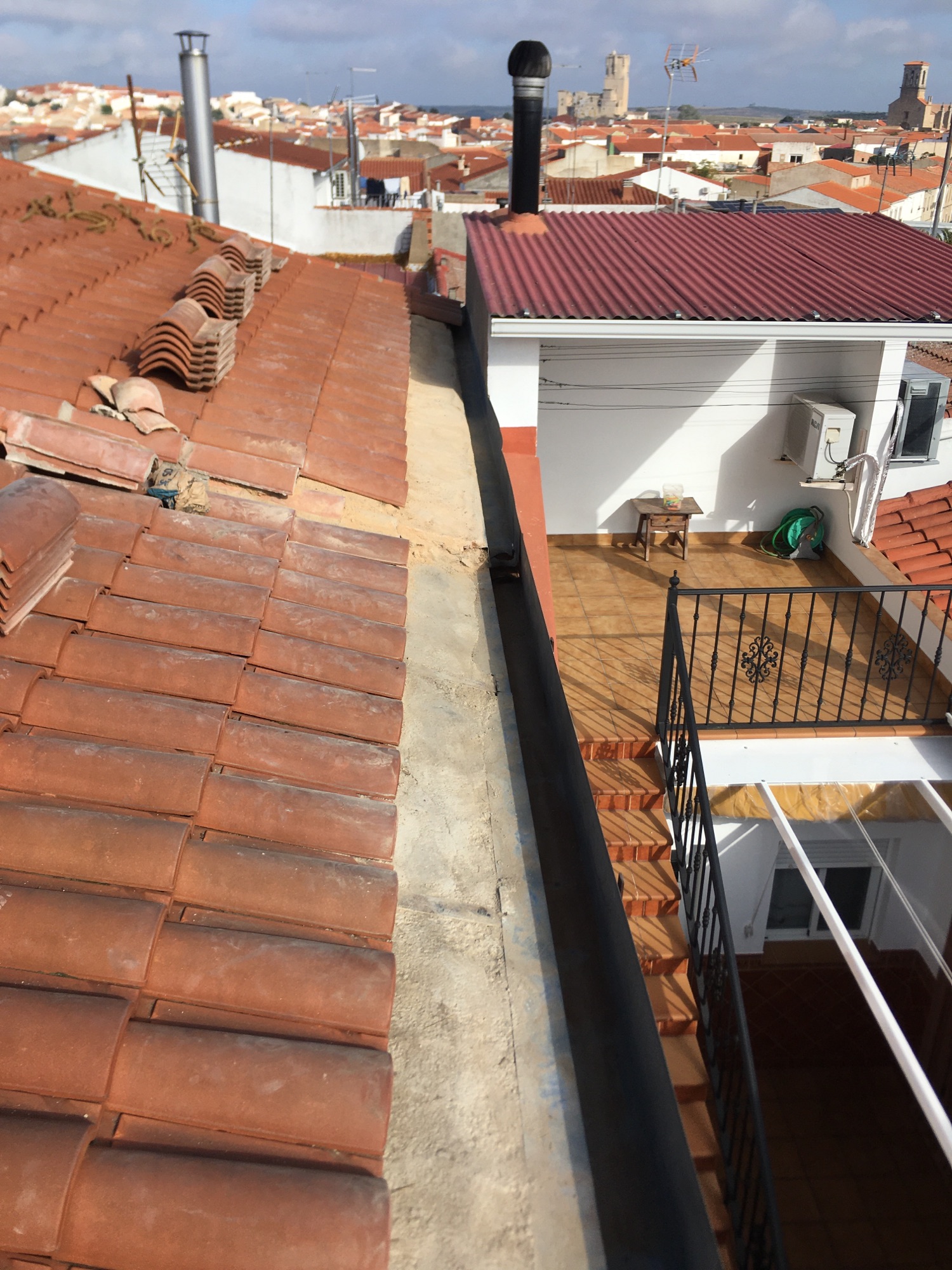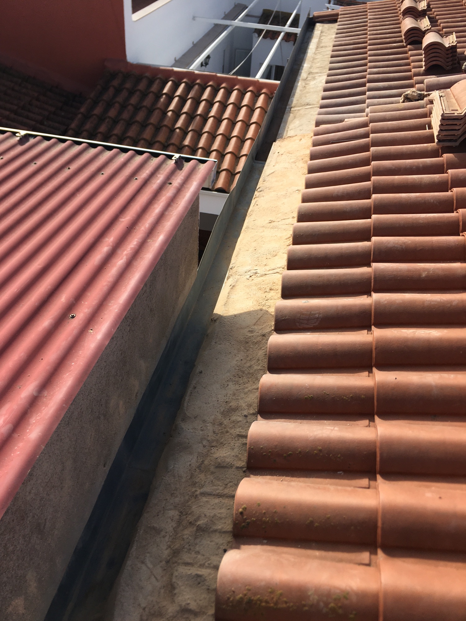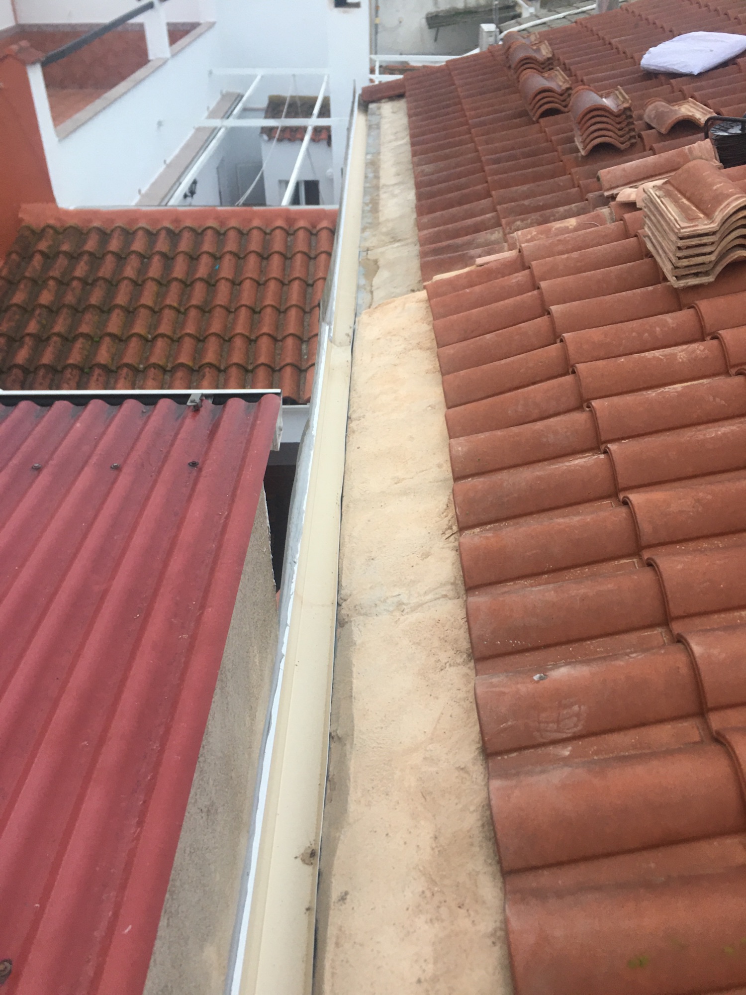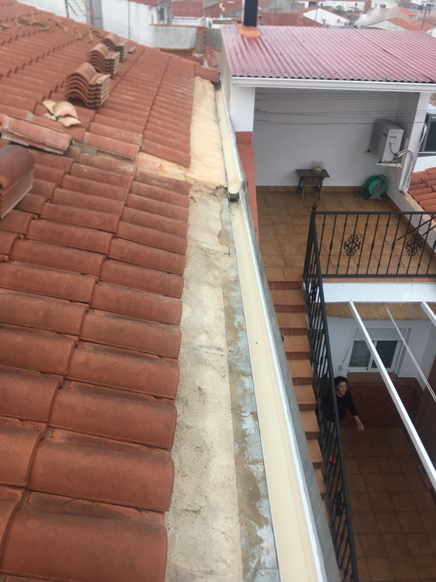 Colocación de canalón aluminio de aguas ciegas dentro de otro que estaba en mal estado