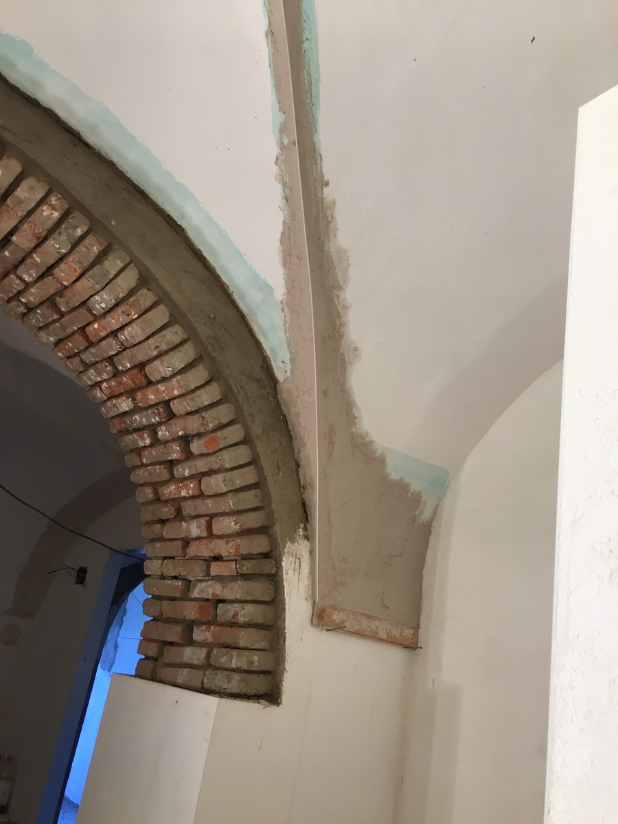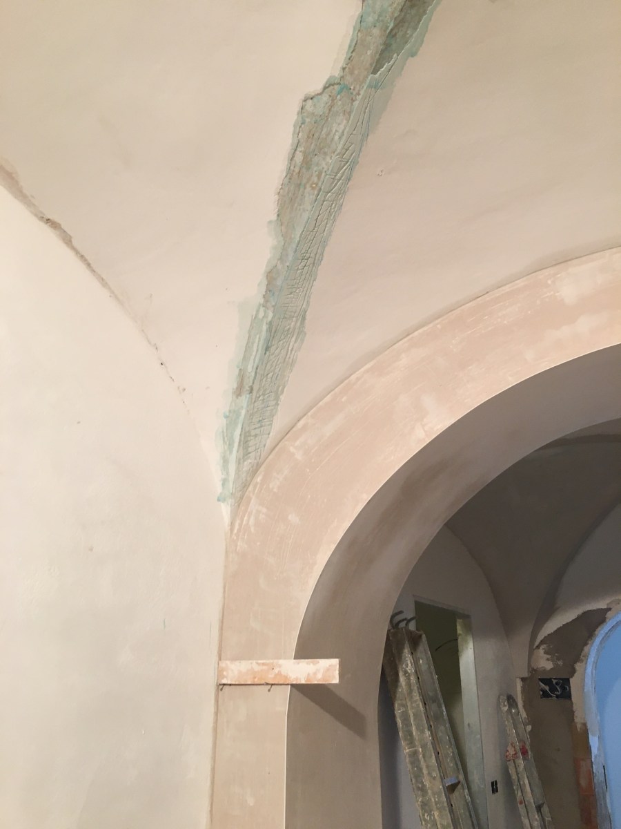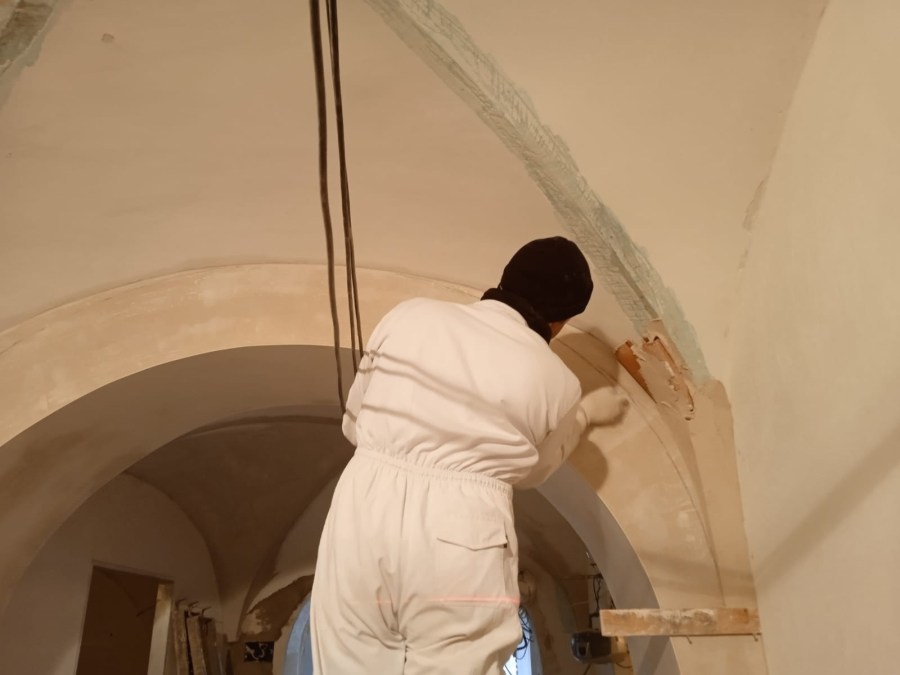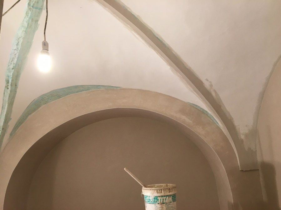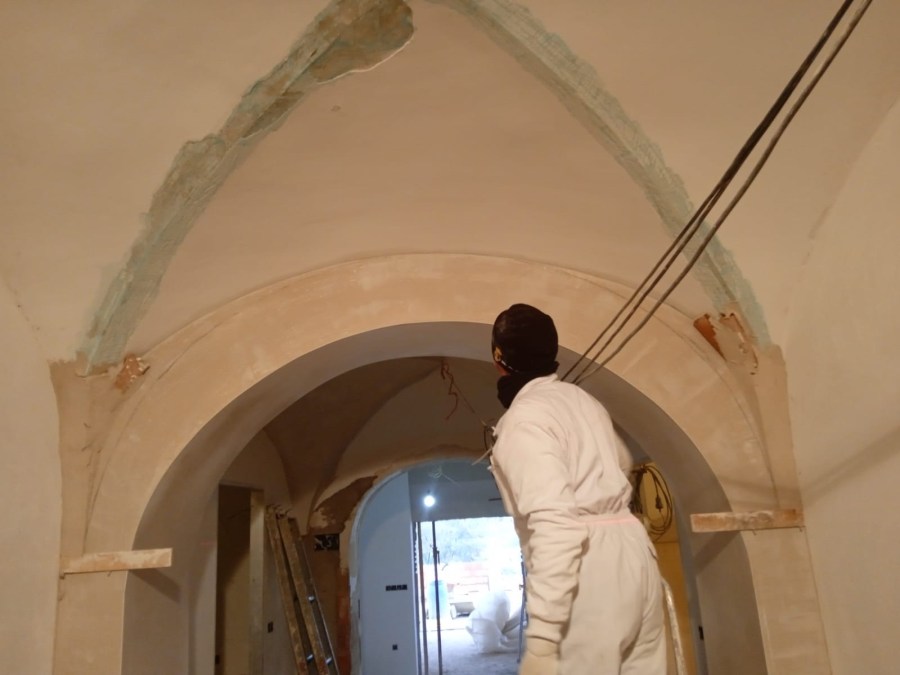 Picado y enlucido de bóvedas con aristas y terminación en fino
