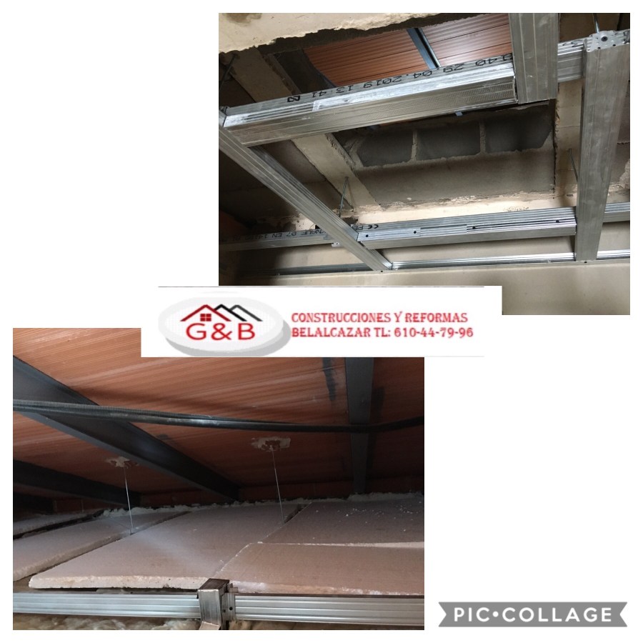 Techos desmontables de pladur sobre tejados de vigas y baldos con aislantes y perfiles