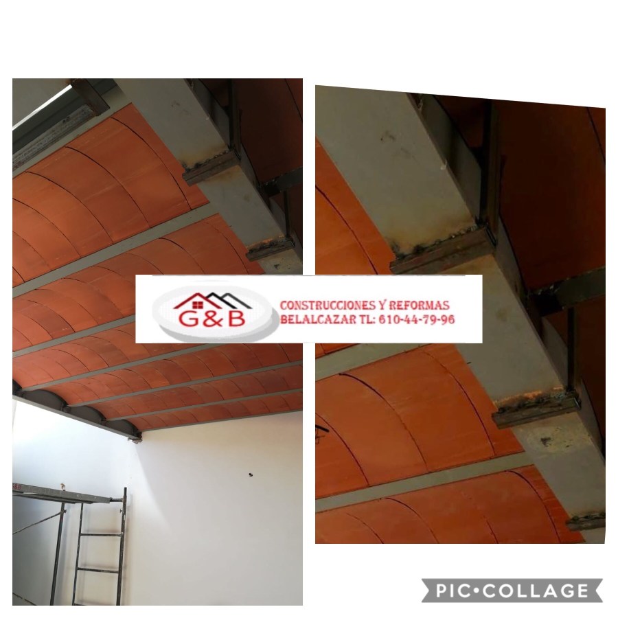 Forado de viga de carga con placas de fibrocemento alisadas según textura a adquirir.