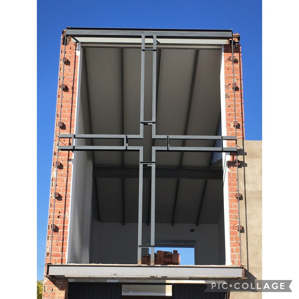 Estructura metálica, cerramiento de obra con revestimiento de azulejos